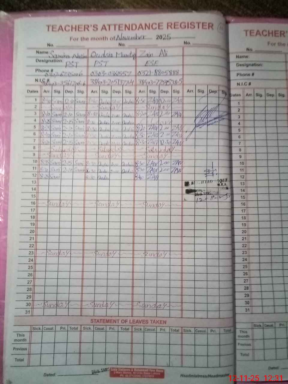 | Name: ZA**** AL**** Designation: (School Headmaster's/Headmistress's) PST Phone/Cell Number: 03**** |