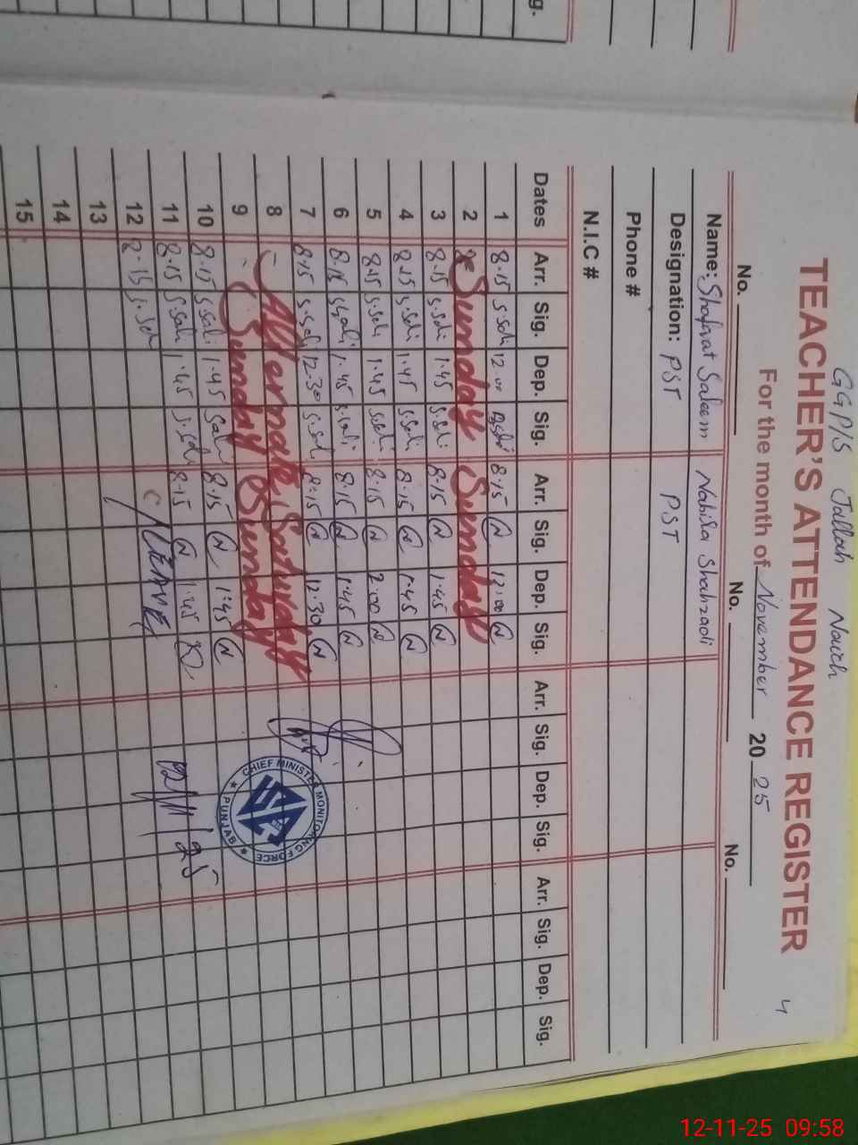 | Name: SH**** SA**** Designation: (School Headmaster's/Headmistress's) PST Phone/Cell Number: 03**** |