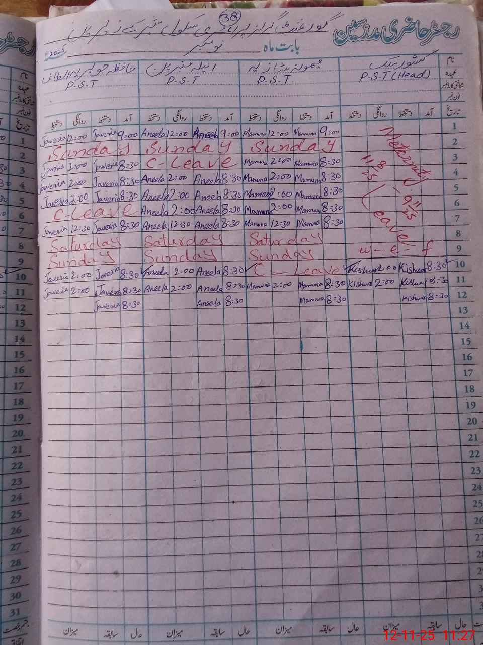 | Leave | Duty | Absent | Maternity | Medical | Ex- Pak |