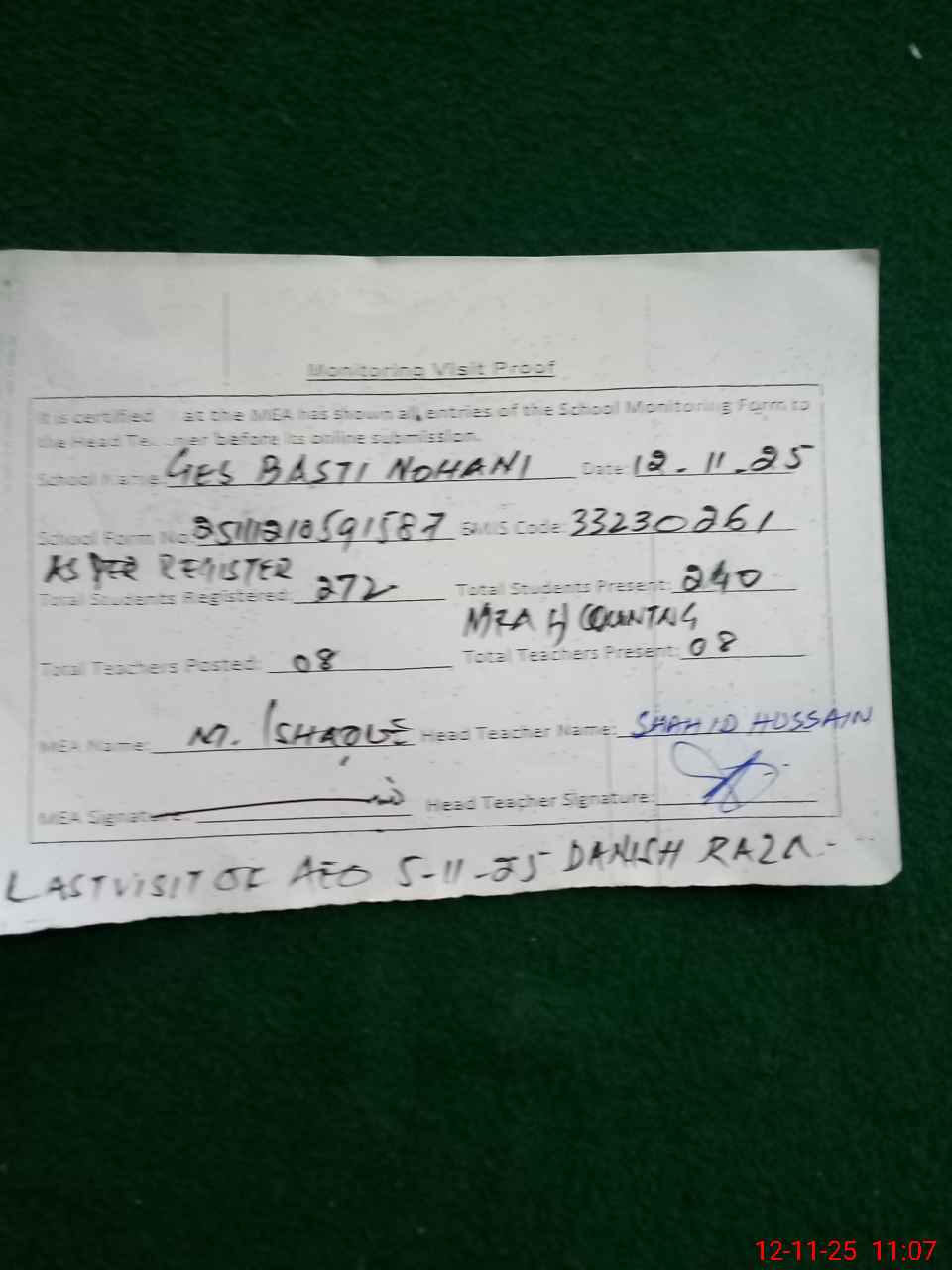 | EMIS Code: 33230261 | Name of School: GES BASTI NOHANI | |||