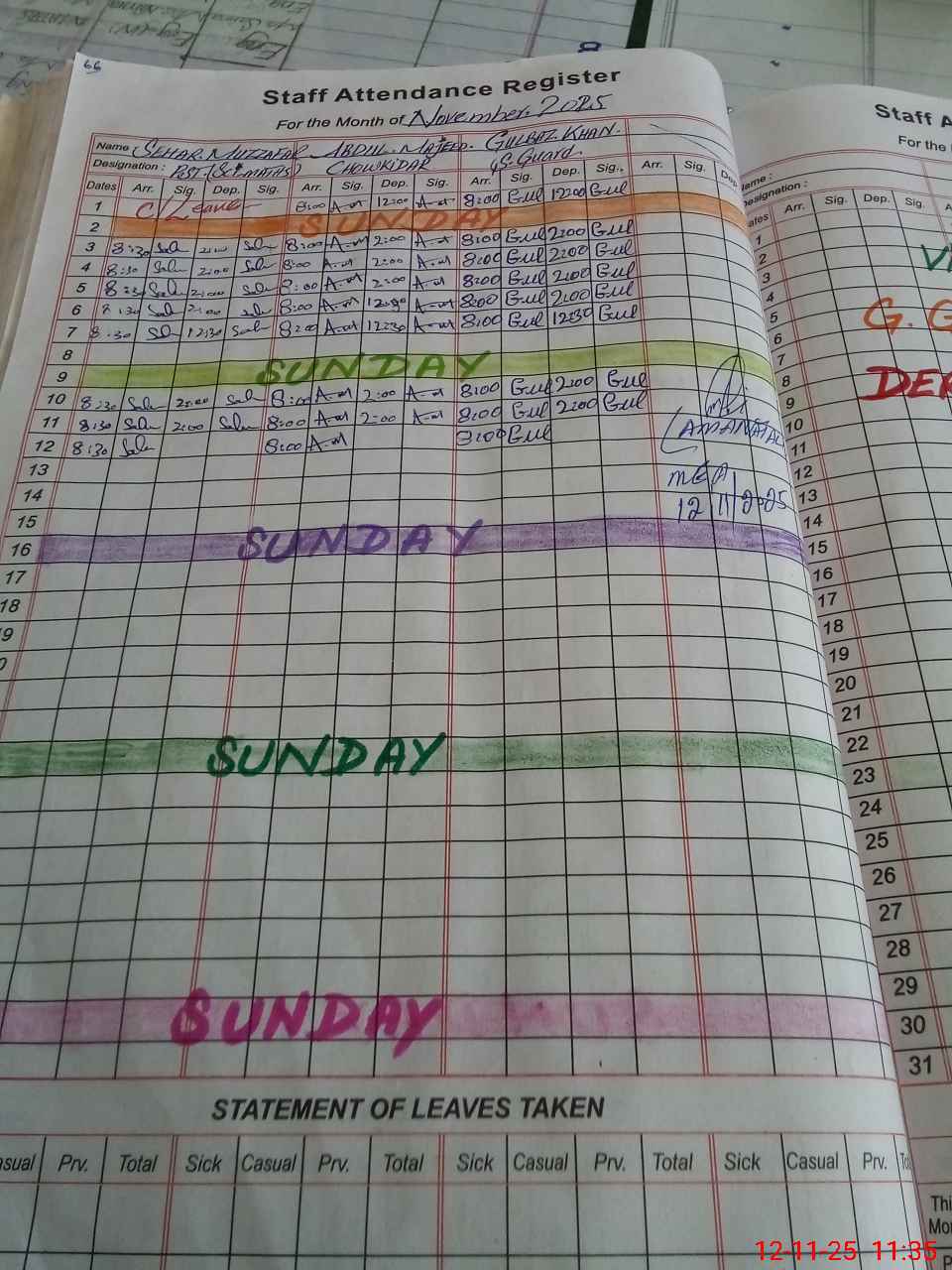| Leave | Duty | Absent | Maternity | Medical | Ex- Pak |
