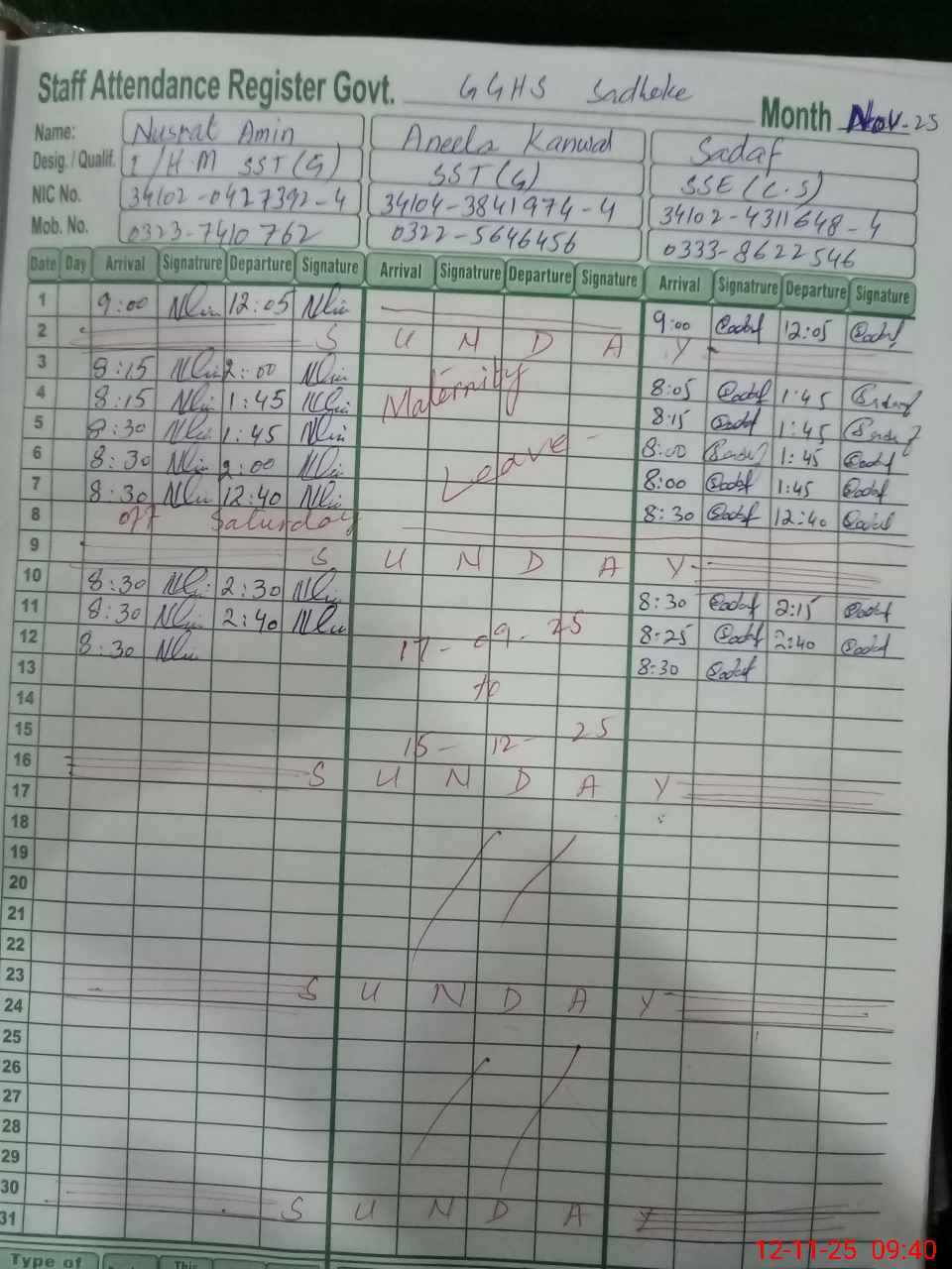 | Name: NU**** AM**** Designation: (School Headmaster's/Headmistress's) SST INC HEAD Phone/Cell Number: 03**** |