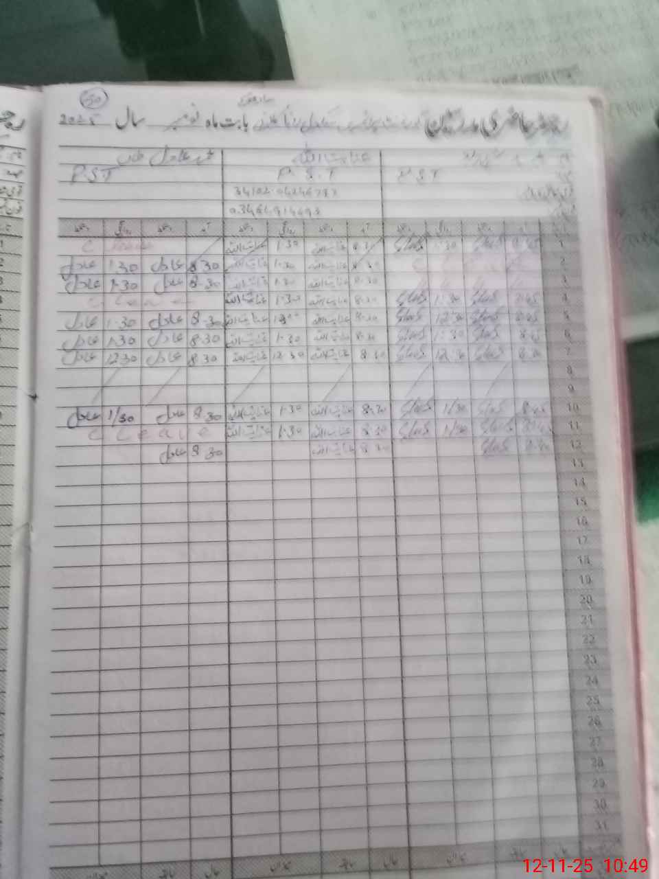 | CNIC | Full Name | Designation | R/C | Absence During Last Calender Month |