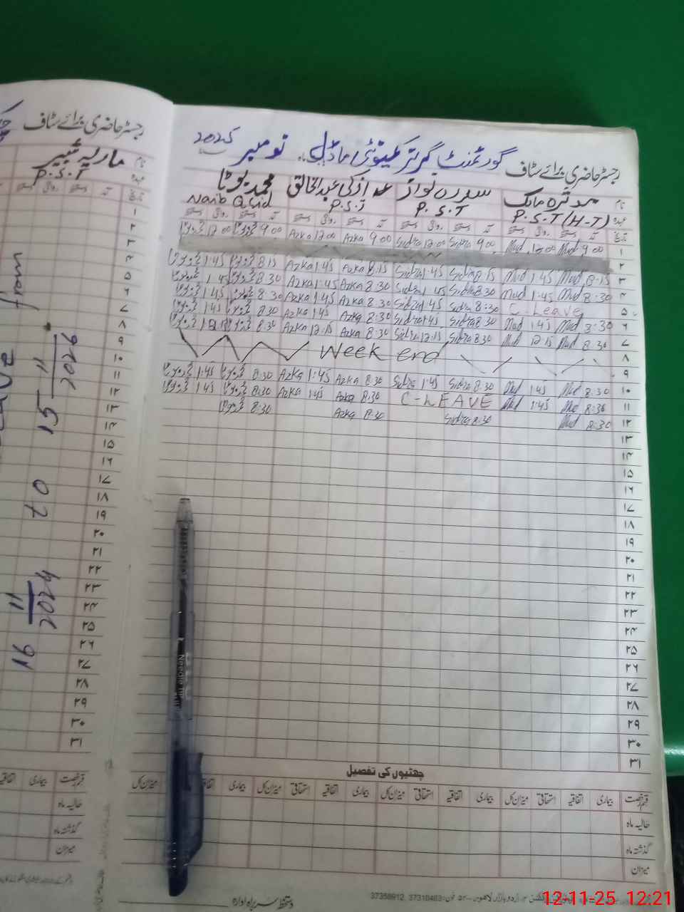 | CNIC | Full Name | Designation | R/C | Absence During Last Calender Month |