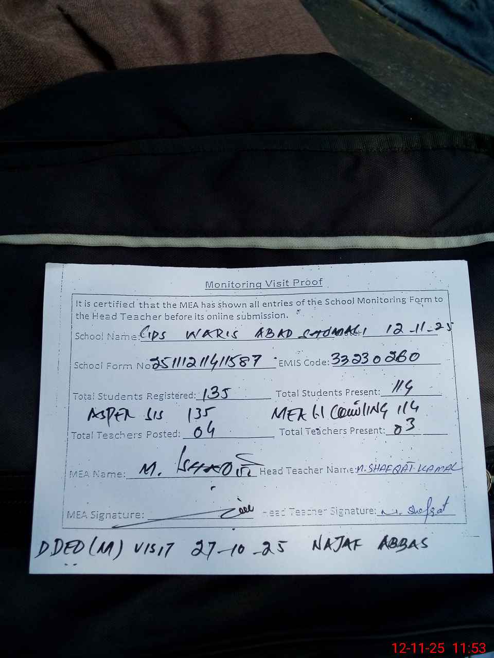 | EMIS Code: 33230260 | Name of School: GPS WARIS ABAD SHORKOT SHUMALI | |||