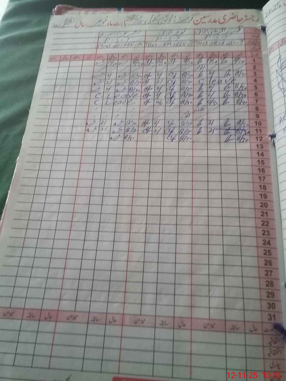 | CNIC | Full Name | Designation | R/C | Absence During Last Calender Month |