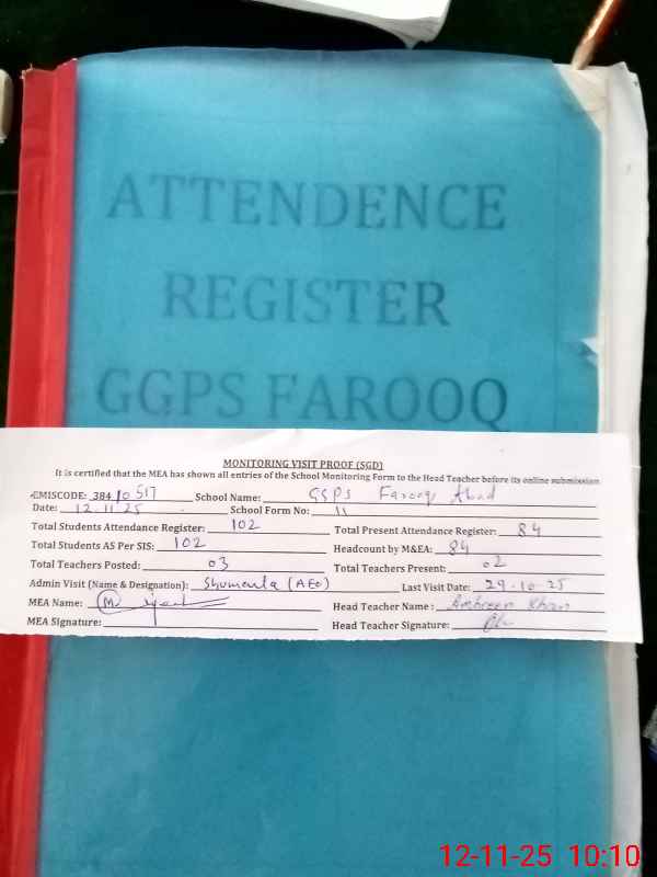 | EMIS Code: 38410517 | Name of School: GGPS FAROOQ ABAD BIN HABIB | |||