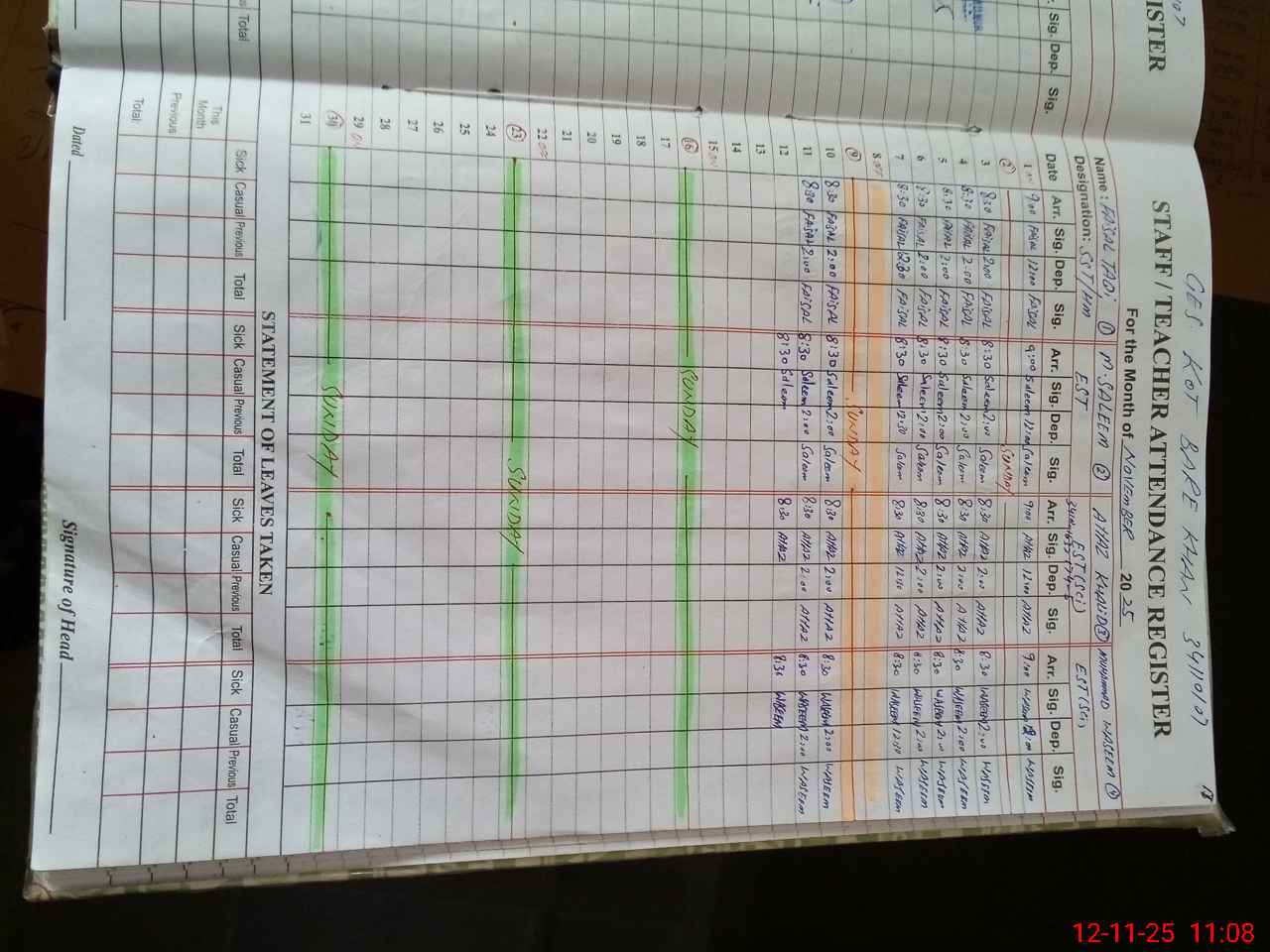 | Name: FA**** TA**** Designation: (School Headmaster's/Headmistress's) SST HM Phone/Cell Number: 03**** |