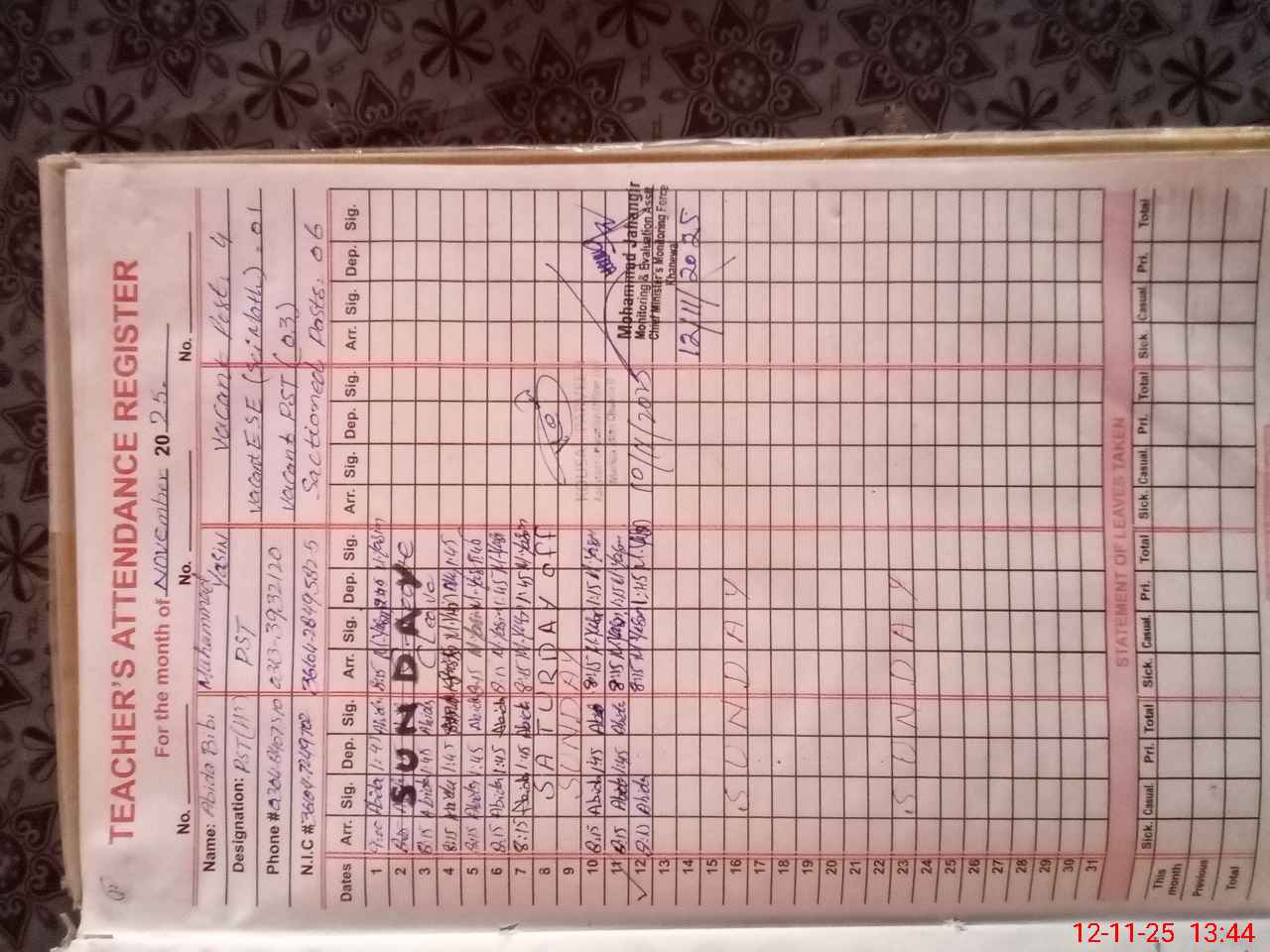 | Name: Ab**** Bi**** Designation: (School Headmaster's/Headmistress's) ESE (Arts) Phone/Cell Number: 03**** |