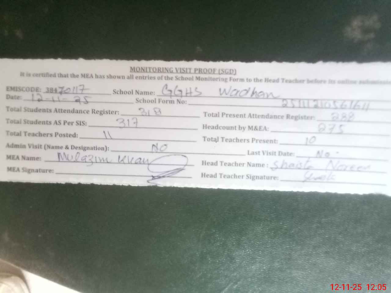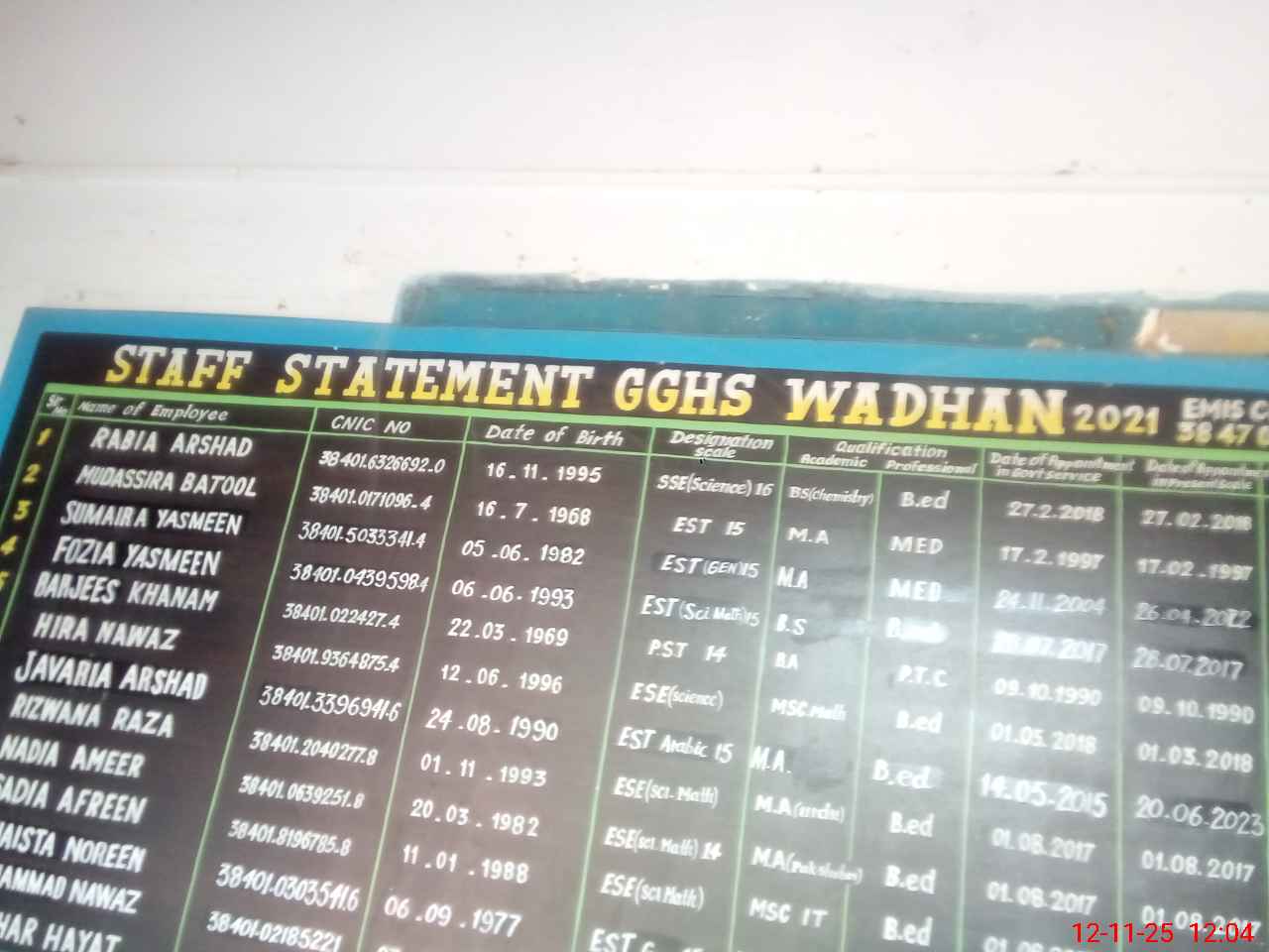 | EMIS Code: 38470117 | Name of School: GGHS WADHAN | |||