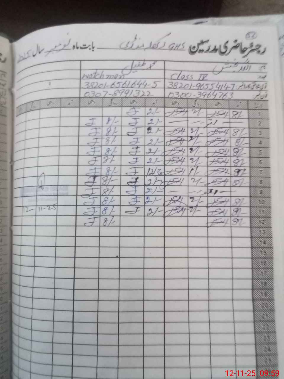 | CNIC | Full Name | Designation | R/C | Absence During Last Calender Month |