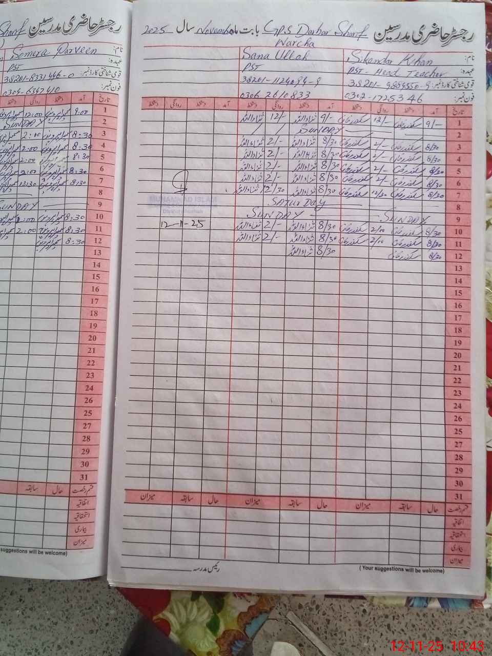 | Name: Sk**** Kh**** Designation: (School Headmaster's/Headmistress's) PST Phone/Cell Number: 03**** |