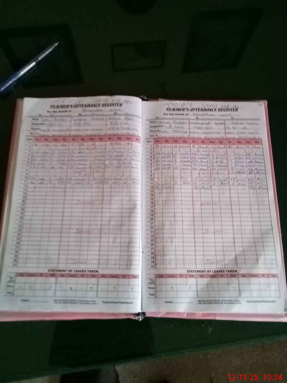 | CNIC | Full Name | Designation | R/C | Absence During Last Calender Month |