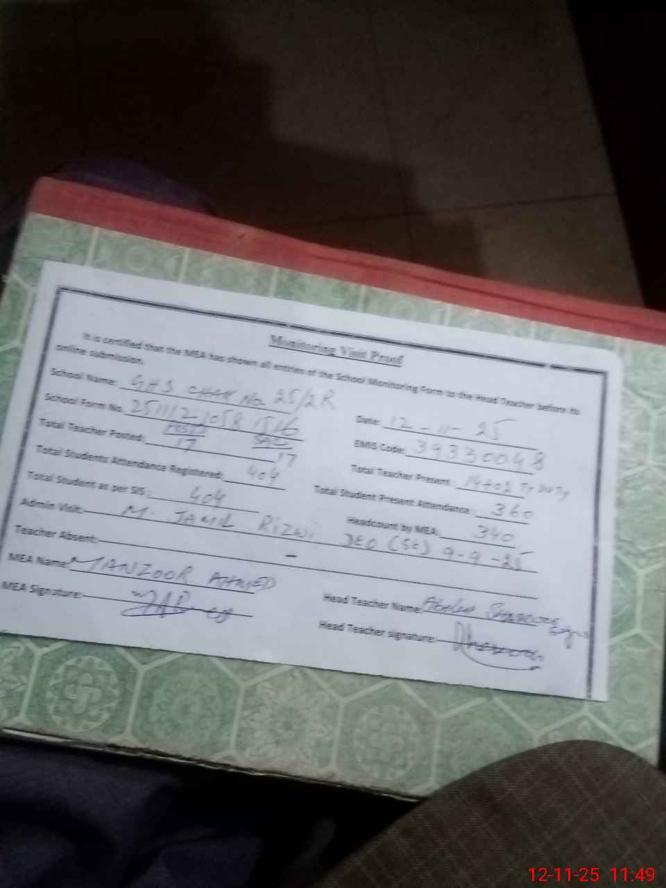 | EMIS Code: 39330048 | Name of School: GHS CHAK NO. 25/2-R | |||