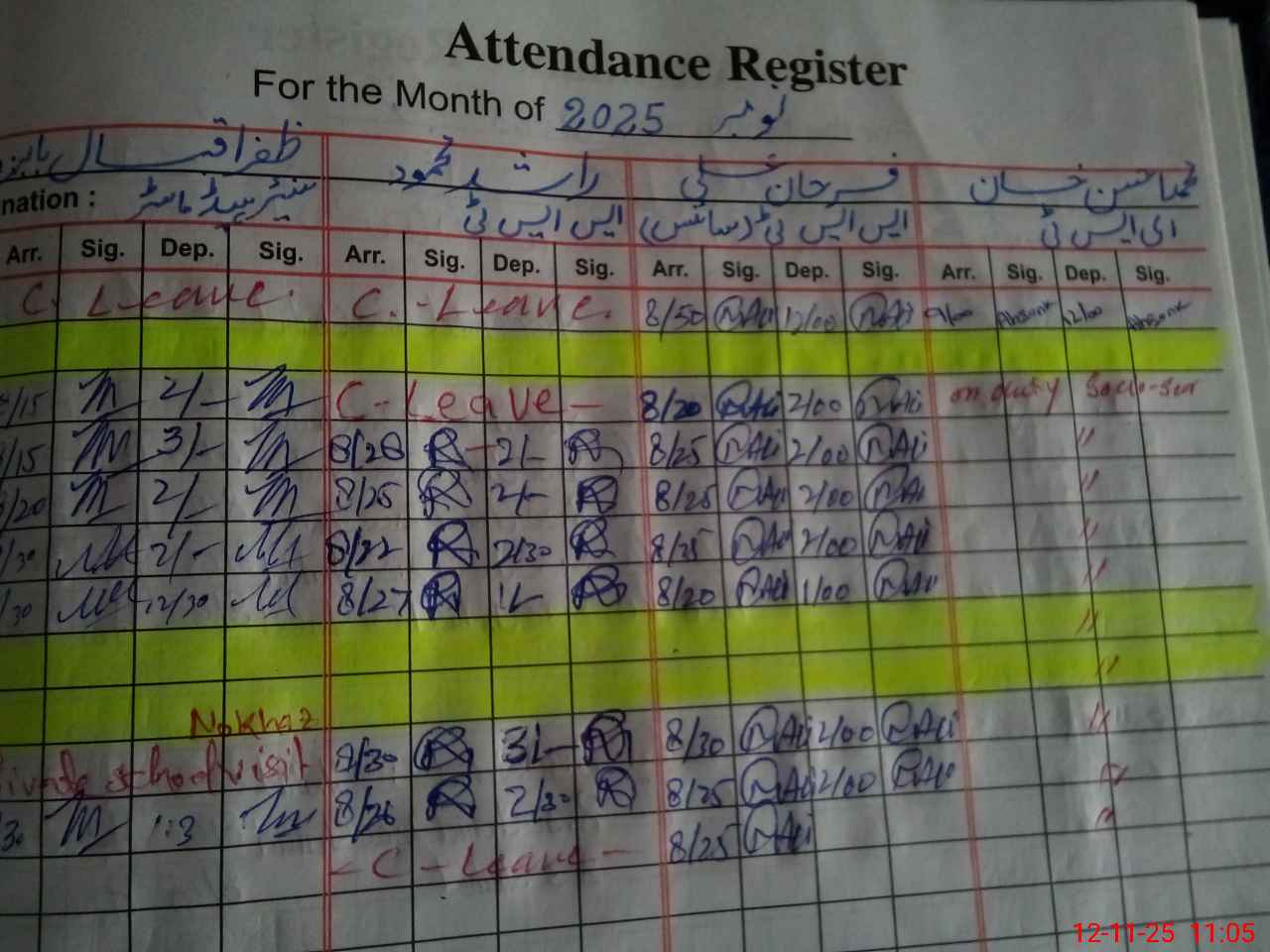 | CNIC | Full Name | Designation | R/C | Absence during last cal. month |