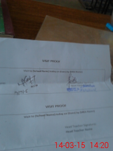 | Attendance Register | Head Teacher | MEA with School | Visit Proof |