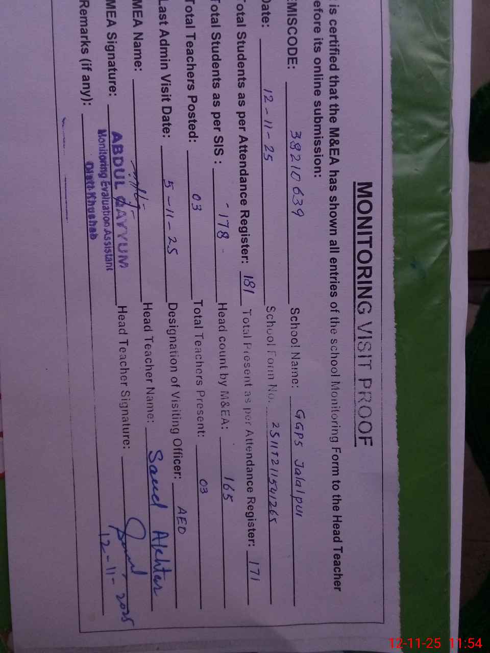 | EMIS Code: 38210639 | Name of School: GGPS JALALPUR SAYEDAN | |||