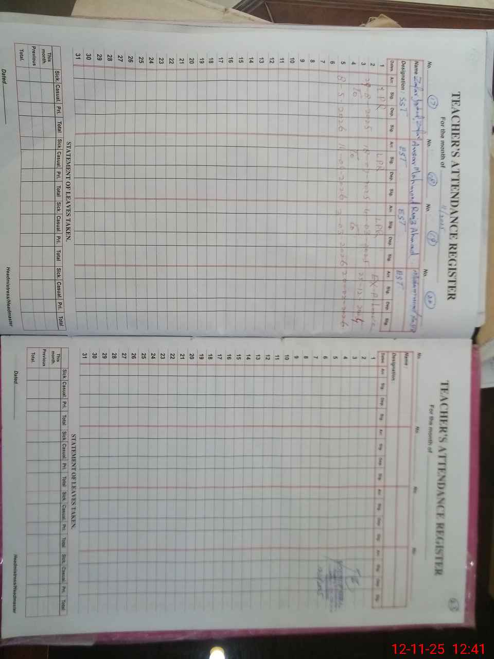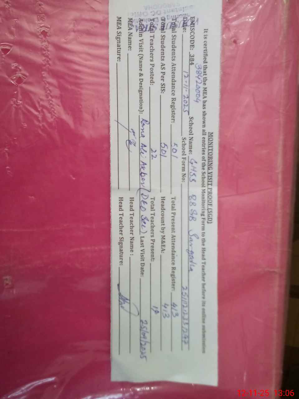 | Attendance Register | Head Teacher | MEA with School | Visit Proof |