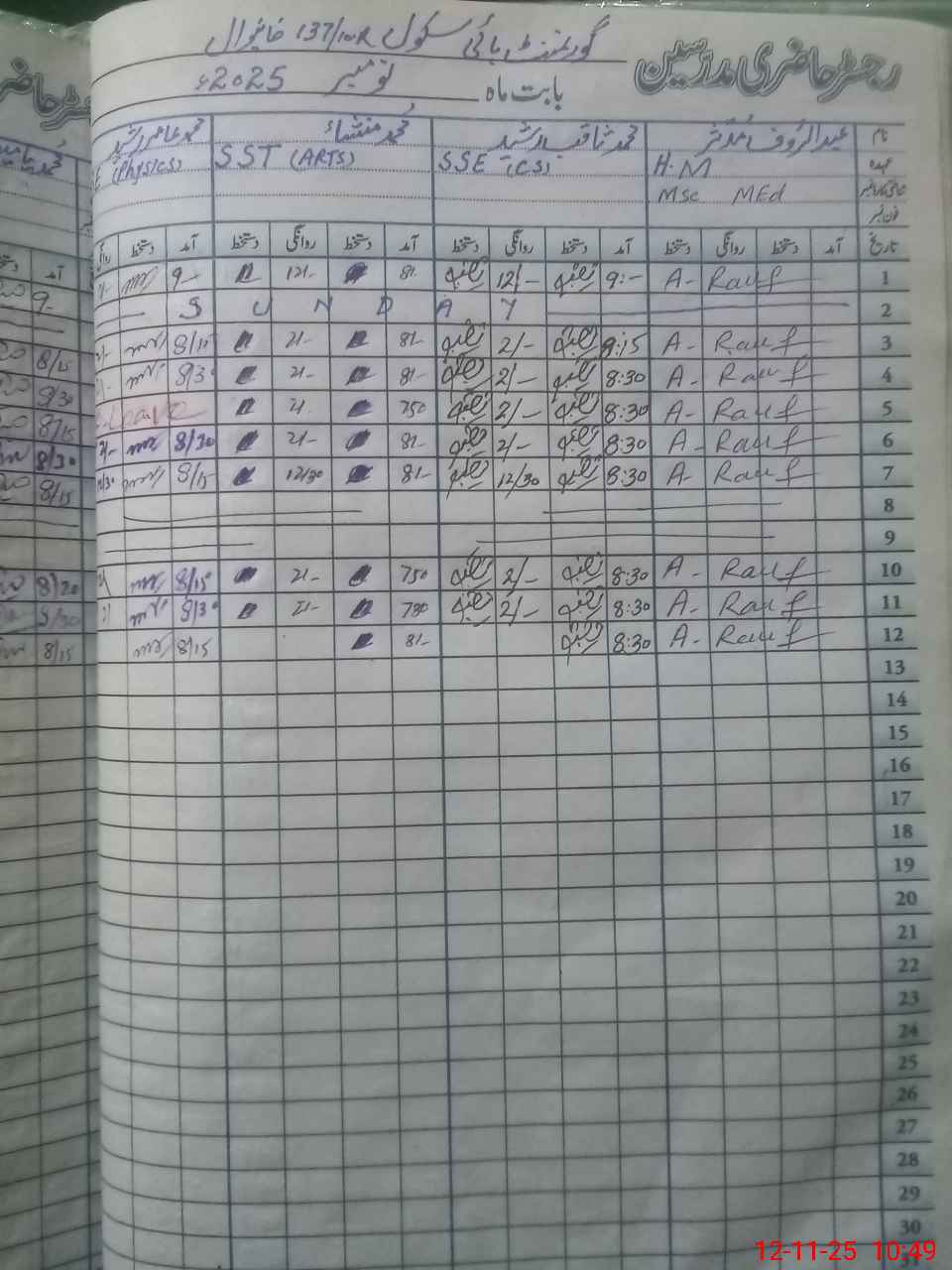 | CNIC | Full Name | Designation | R/C | Absence During Last Calender Month |