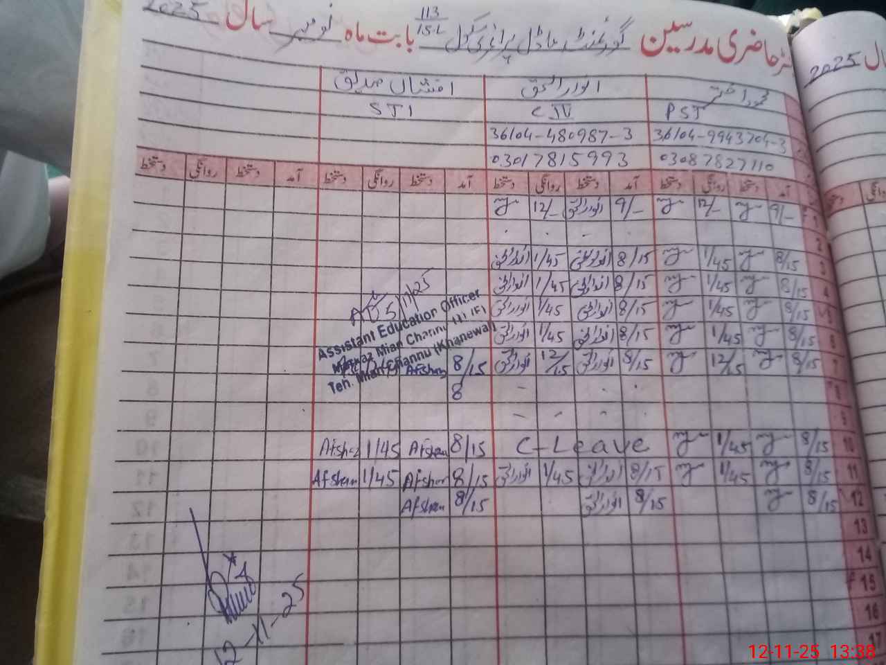 | CNIC | Full Name | Designation | R/C | Absence During Last Calender Month |