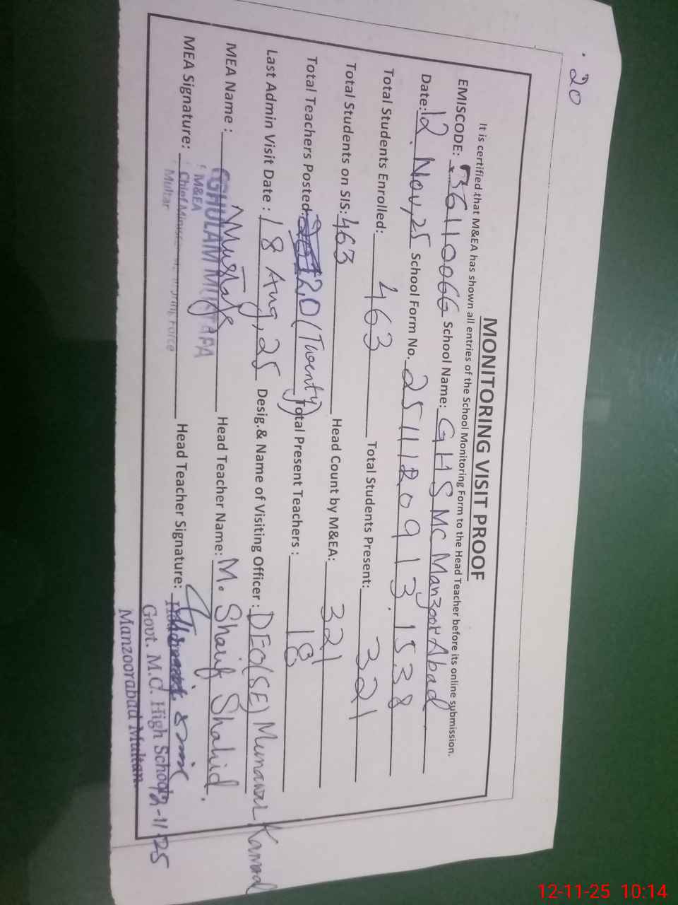 | EMIS Code: 36110066 | Name of School: GHS MC MANZOOR ABAD MULTAN | |||