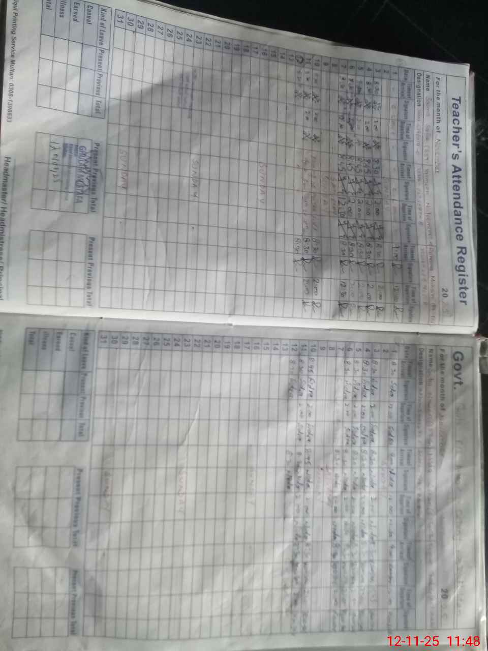 | CNIC | Full Name | Designation | R/C | Absence During Last Calender Month |