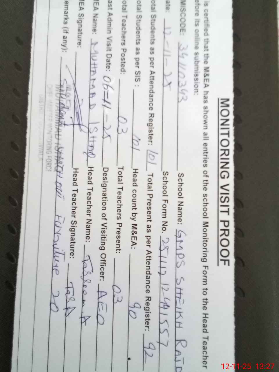 | EMIS Code: 34110343 | Name of School: GMPS SHEIKH RAJADHA | |||