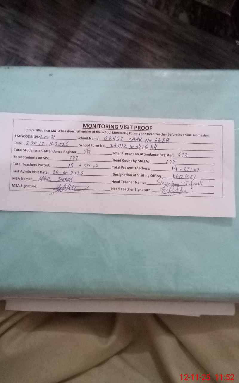 | EMIS Code: 39220031 | Name of School: GGHSS CHAK NO.66 EB | |||