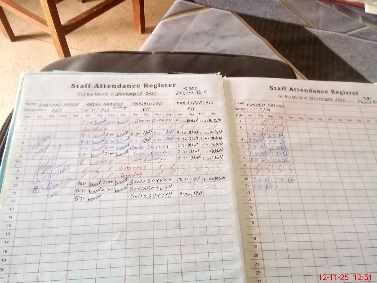 | CNIC | Full Name | Designation | R/C | Absence During Last Calender Month |
