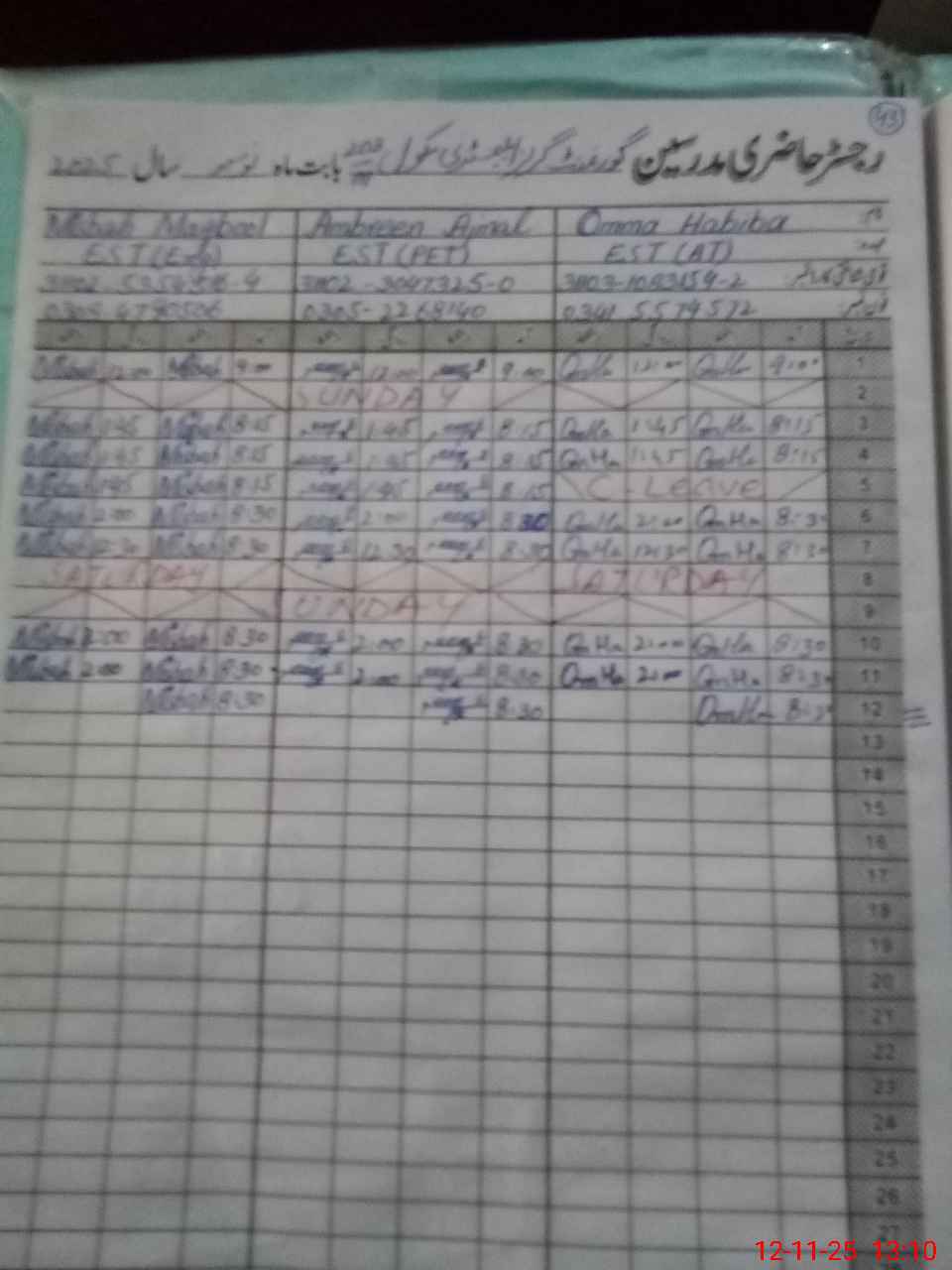 | Name: Um**** Ha**** Designation: (School Headmaster's/Headmistress's) EST AT Phone/Cell Number: 03**** |