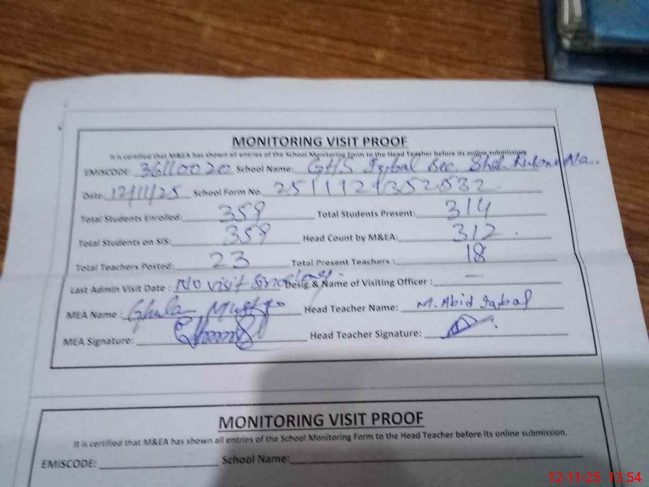 | EMIS Code: 36110020 | Name of School: GHS IQBAL SHAH RUKN ALAM COLONY BLOCK-B MULTAN | |||