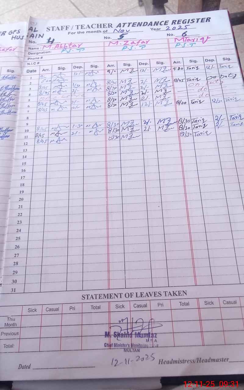 | Name: Mu**** Ra**** Sh**** Designation: (School Headmaster's/Headmistress's) PST/PTC/JV Phone/Cell Number: 03**** |