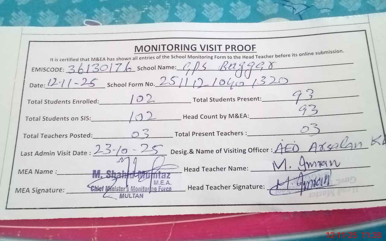 | EMIS Code: 36130176 | Name of School: GPS BAGGER MOZA BAGGAR P/O JAL WALA | |||