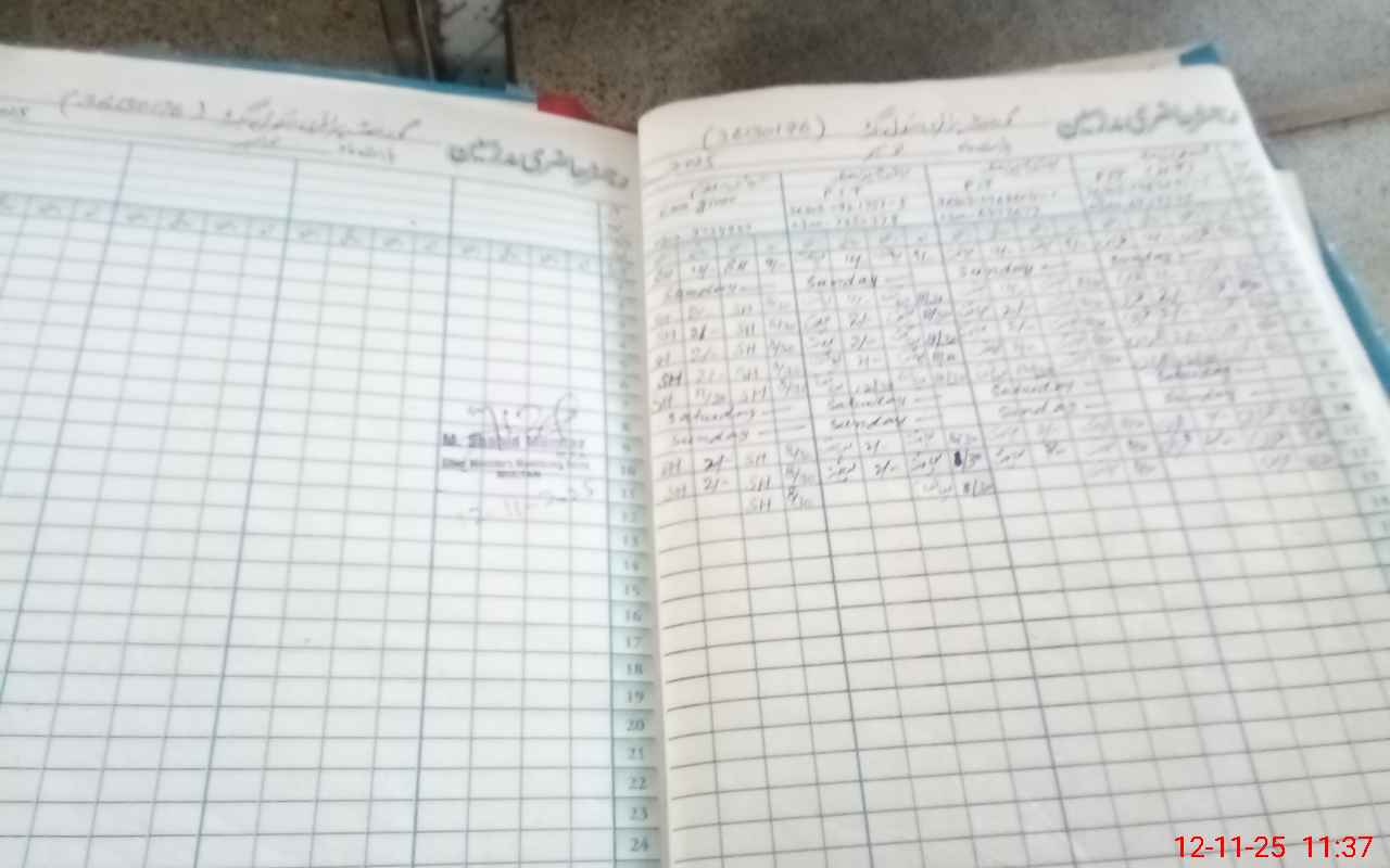 | CNIC | Full Name | Designation | R/C | Absence During Last Calender Month |
