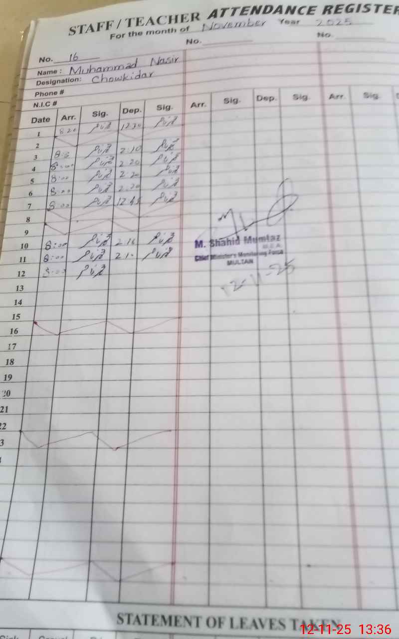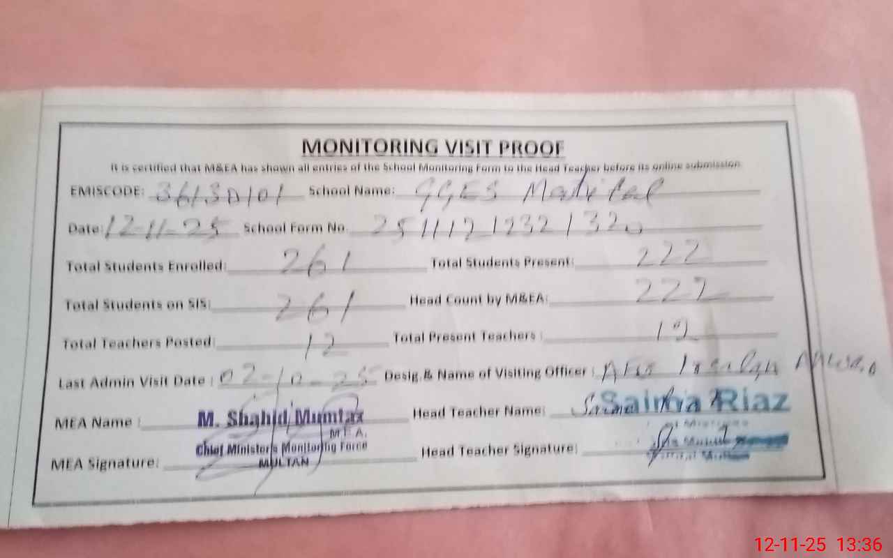 | EMIS Code: 36130101 | Name of School: GGES MATTI TAL MULTAN | |||