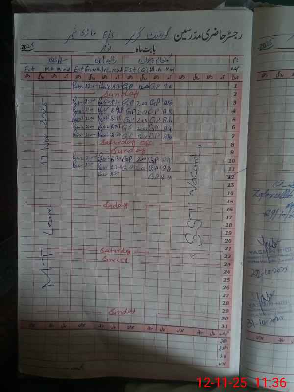 | 38**** | Sa**** Bi**** | ESE Urdu | Regular | 0 | 0 | 0 | 0 | 0 | 0 | 0 | 0 | 0 | Absent (Un-Authorized) |