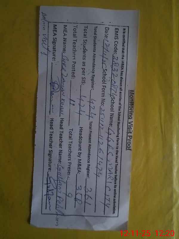 | Attendance Register | Head Teacher | MEA with School | Visit Proof |