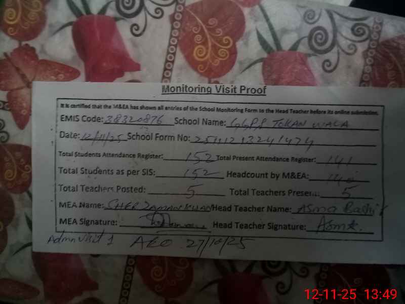 | EMIS Code: 38320876 | Name of School: GGPS TOKAN WALA | |||