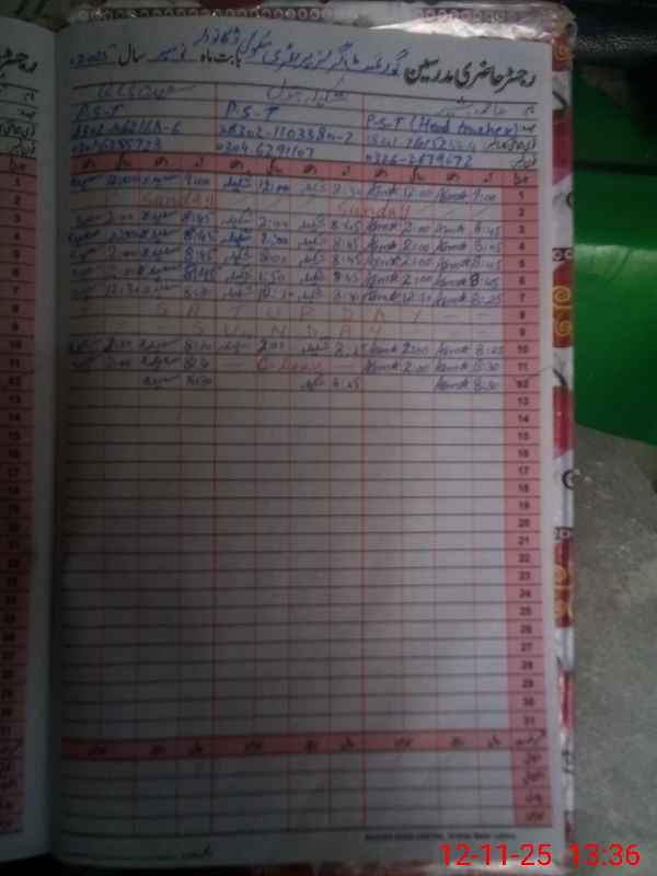| Name: AS**** BA**** Designation: (School Headmaster's/Headmistress's) PST Phone/Cell Number: 03**** |