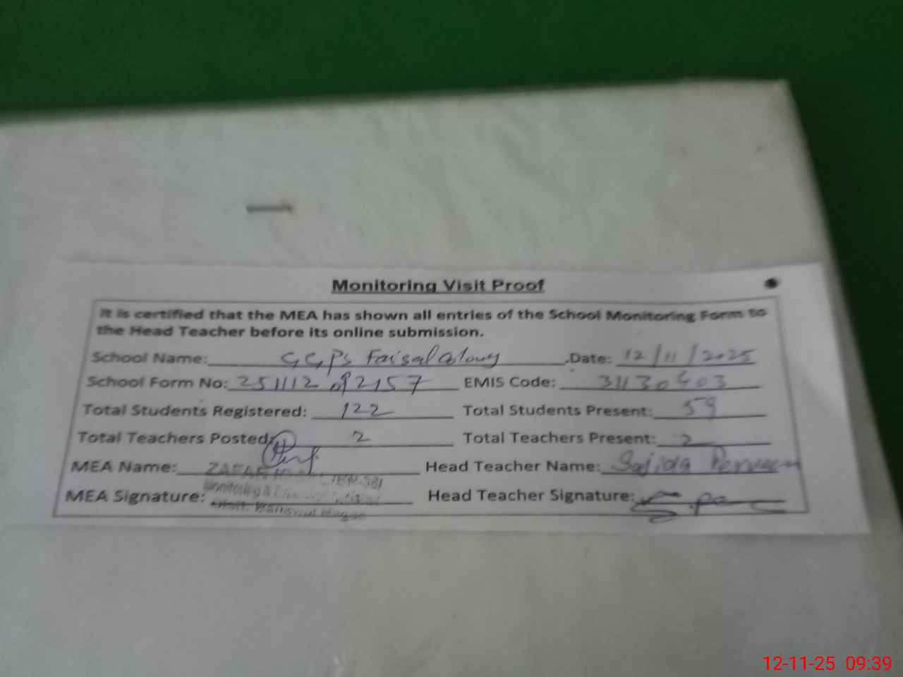 | EMIS Code: 31130403 | Name of School: GGPS FAISAL COLONY | |||