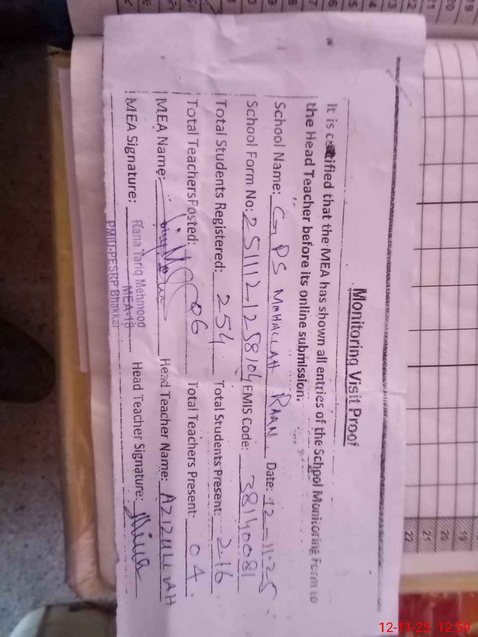 | EMIS Code: 38140081 | Name of School: GPS MOHALLA RANN | |||