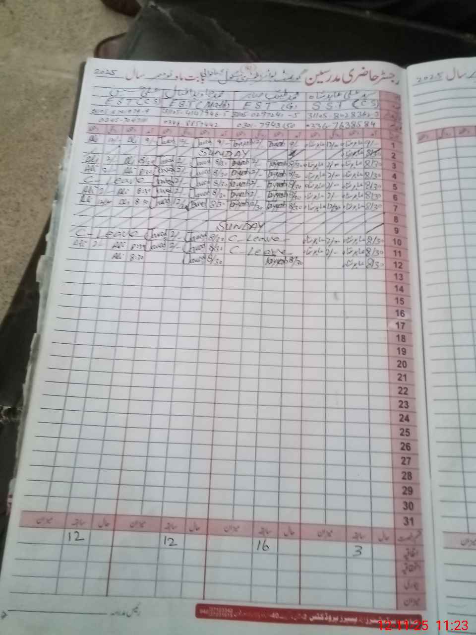 | CNIC | Full Name | Designation | R/C | Absence During Last Calender Month |