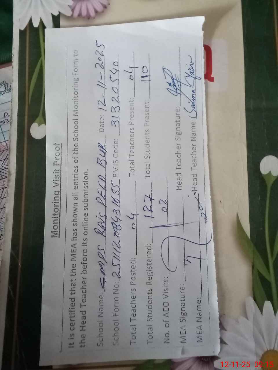 | EMIS Code: 31320540 | Name of School: GMPS RAIS PEER BUX | |||