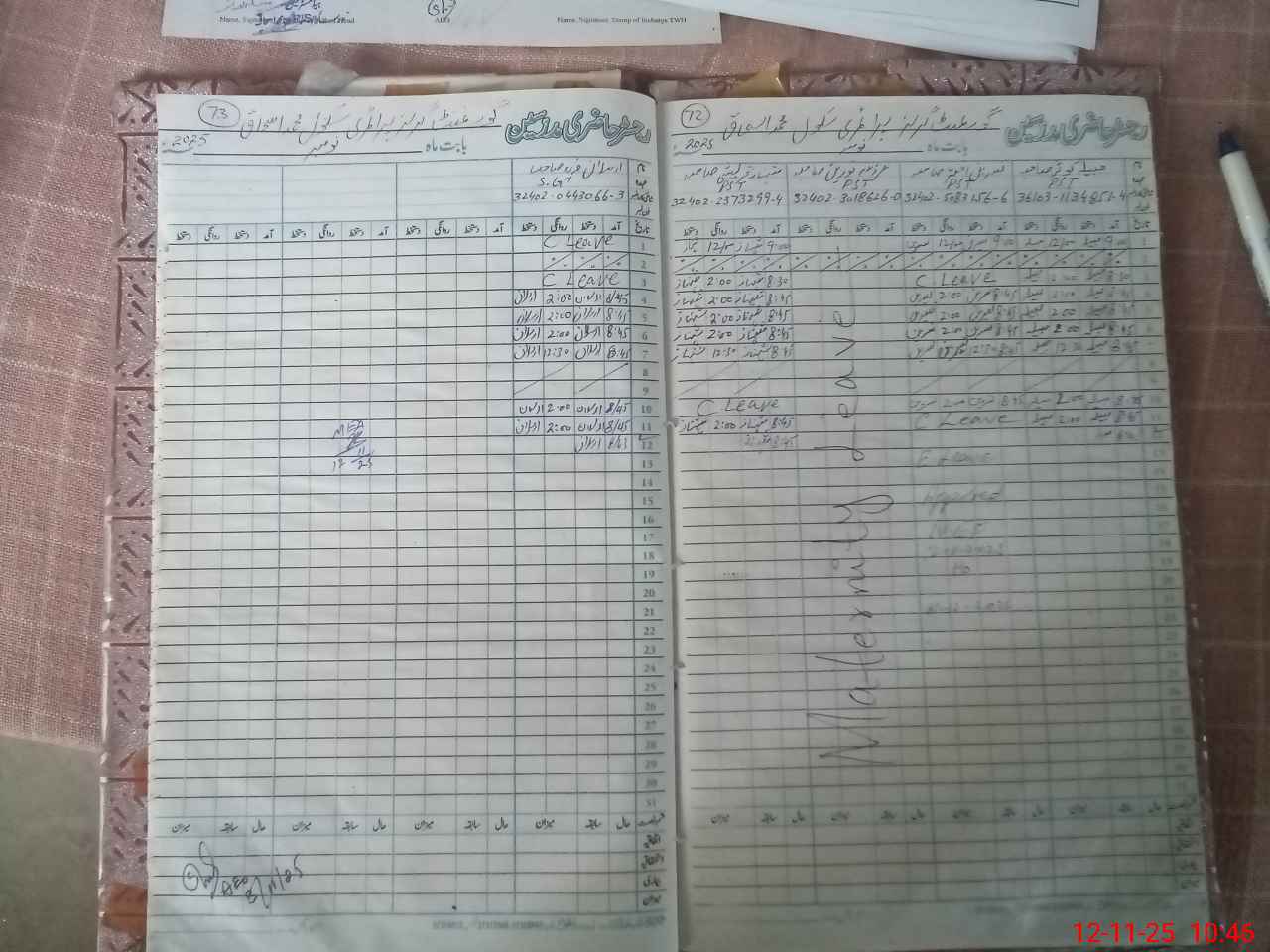 | CNIC | Full Name | Designation | R/C | Absence During Last Calender Month |