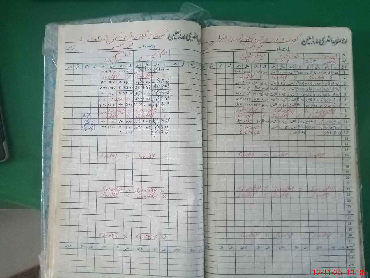| CNIC | Full Name | Designation | R/C | Absence During Last Calender Month |