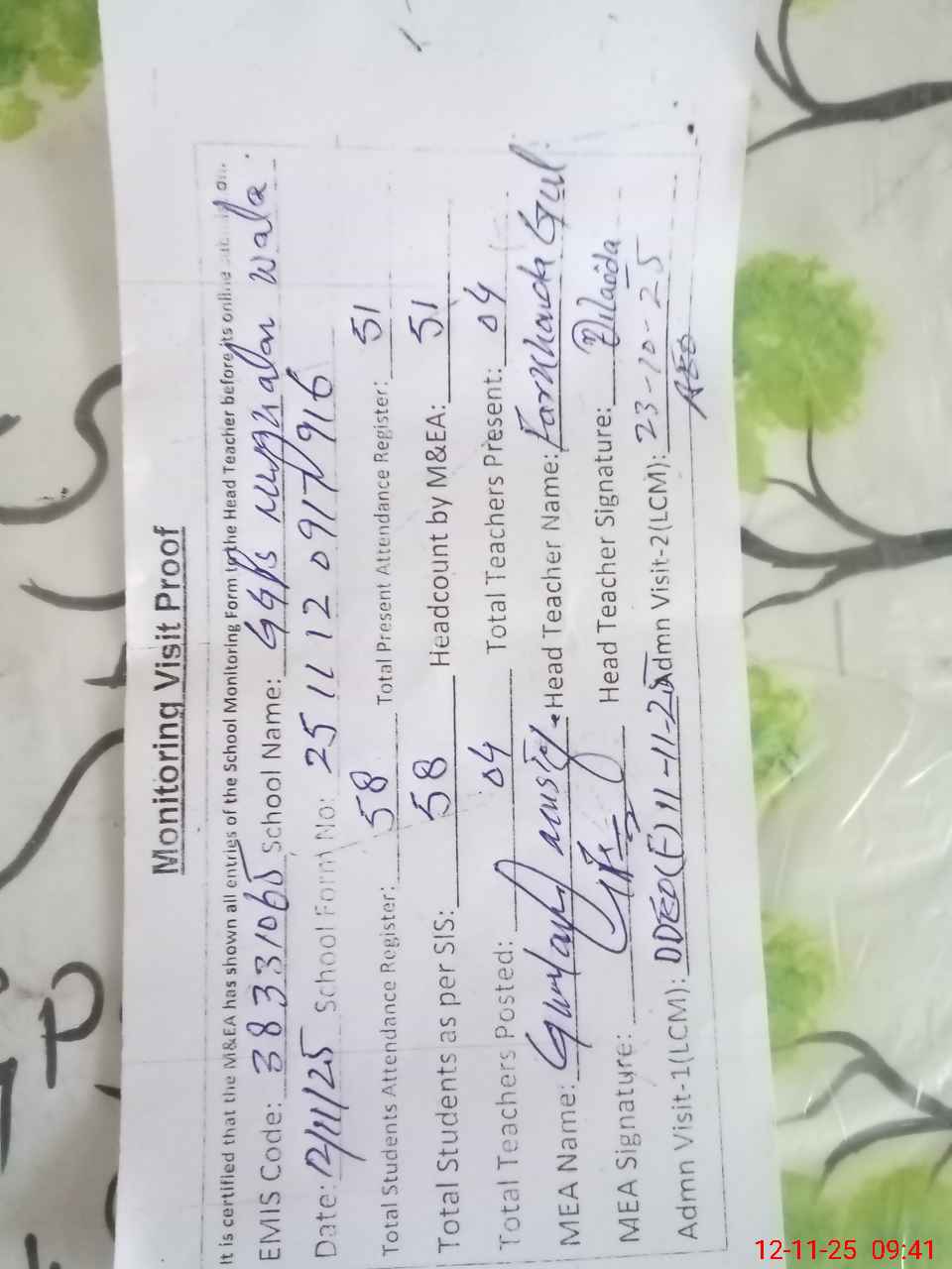 | EMIS Code: 38331065 | Name of School: GGPS MUGHALAN WALA | |||