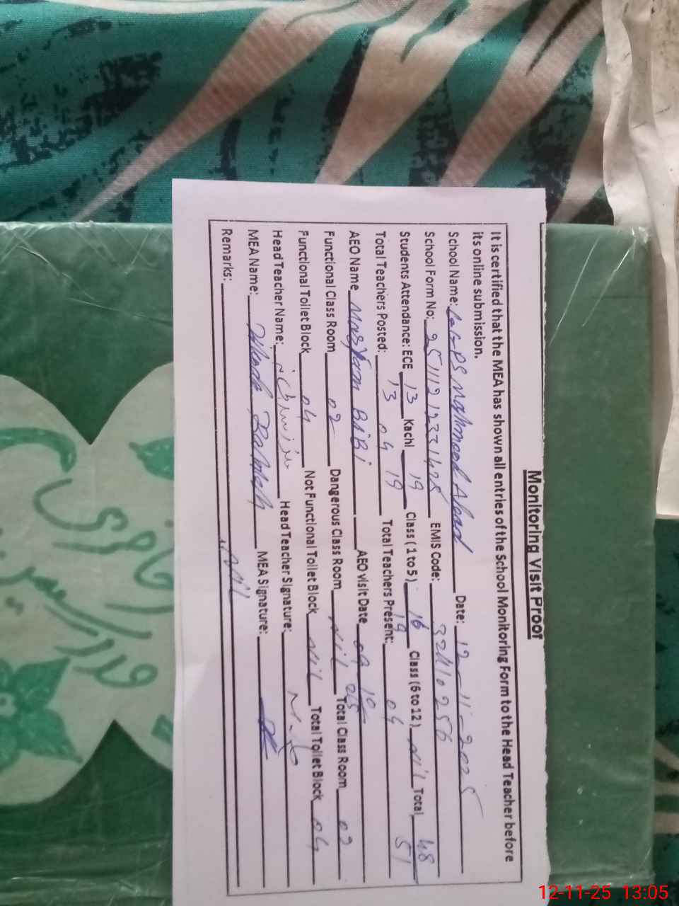 | EMIS Code: 32410256 | Name of School: GGPS MEHMOOD ABAD NO. 2 | |||