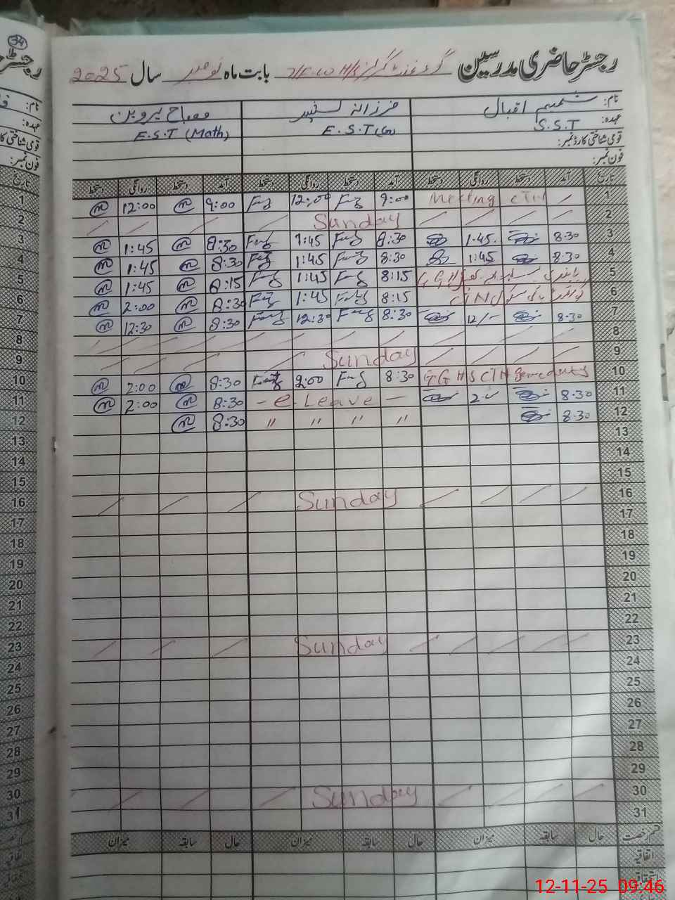 | Name: SH**** IQ**** Designation: (School Headmaster's/Headmistress's) SST Gen Phone/Cell Number: 03**** |