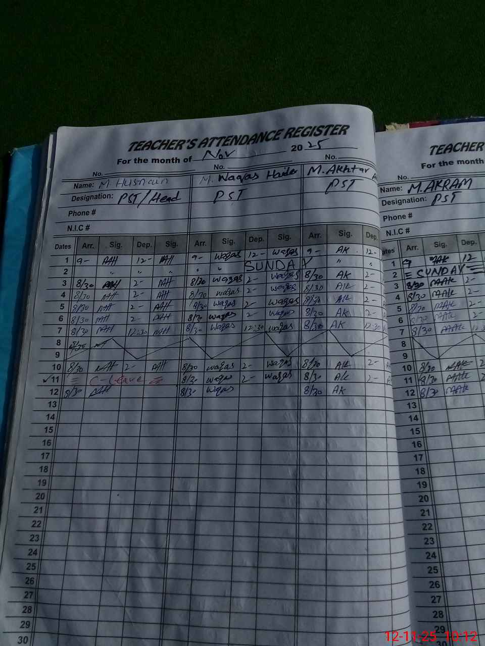 | CNIC | Full Name | Designation | R/C | Absence During Last Calender Month |