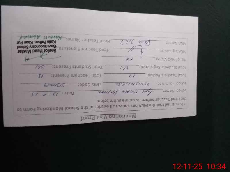 | Certified that this School was Inspected by the Undersigned MEA/DMO Today and the Information Stated Above is as Per Record. | |||||